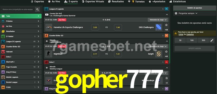 A aposta gopher777 oferece aos jogadores a experiência mais conveniente de apostas em eSports!